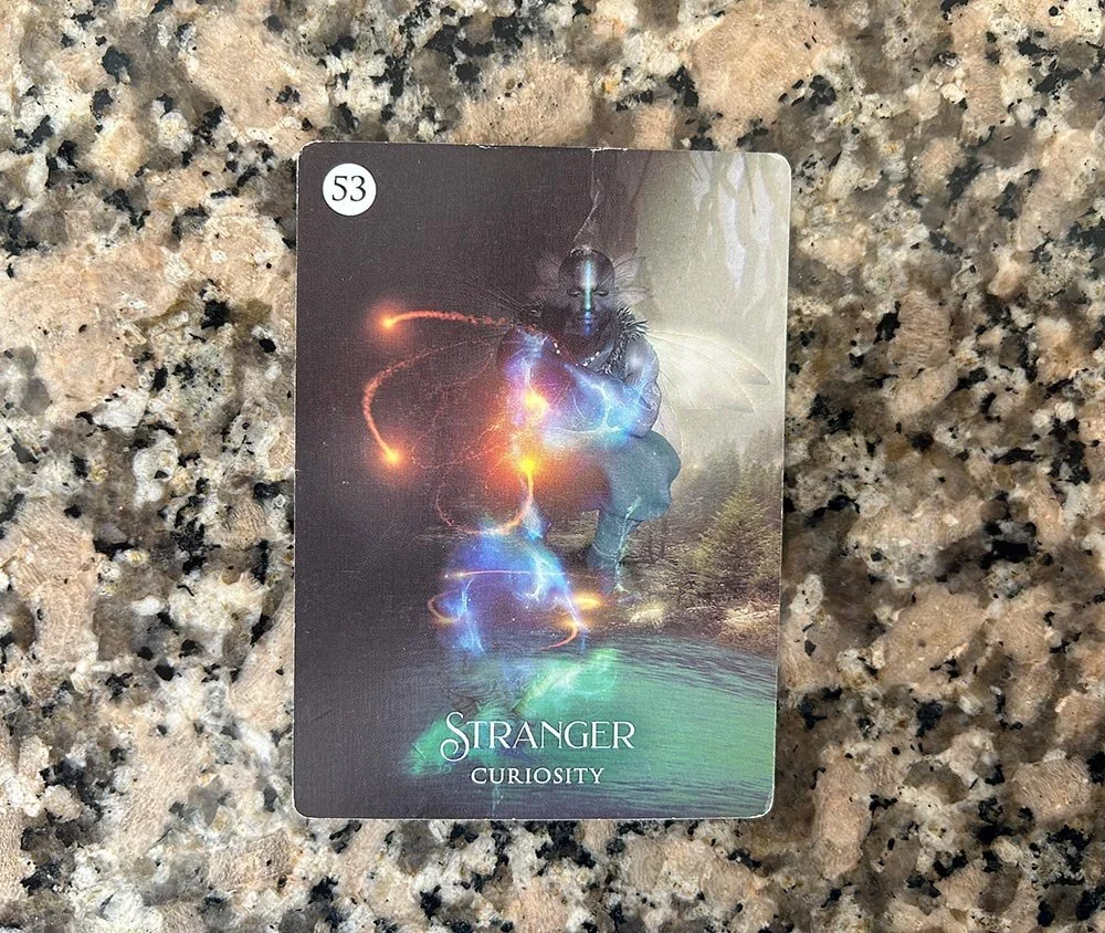 Before we get started with the pile selection: I invite you to take three deep breaths. One of the oracle cards above has a message for you. Which one is radiating outwards to you?