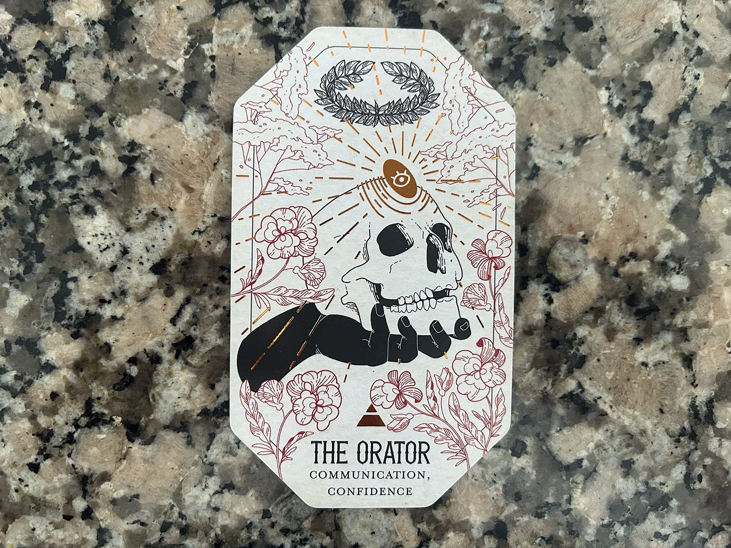 The seats of the theater curve away on either side of you, filled with a rapt audience waiting for the performance to begin. On the stage, a single figure clears their throat and begins their soliloquy … Even when they’re not performing, the Orator speaks with complete confidence. They’ve never shied away from a public stage, but they’re so used to reading from a script that sometimes they find themselves tongue-tied when it comes to thinking for themselves.